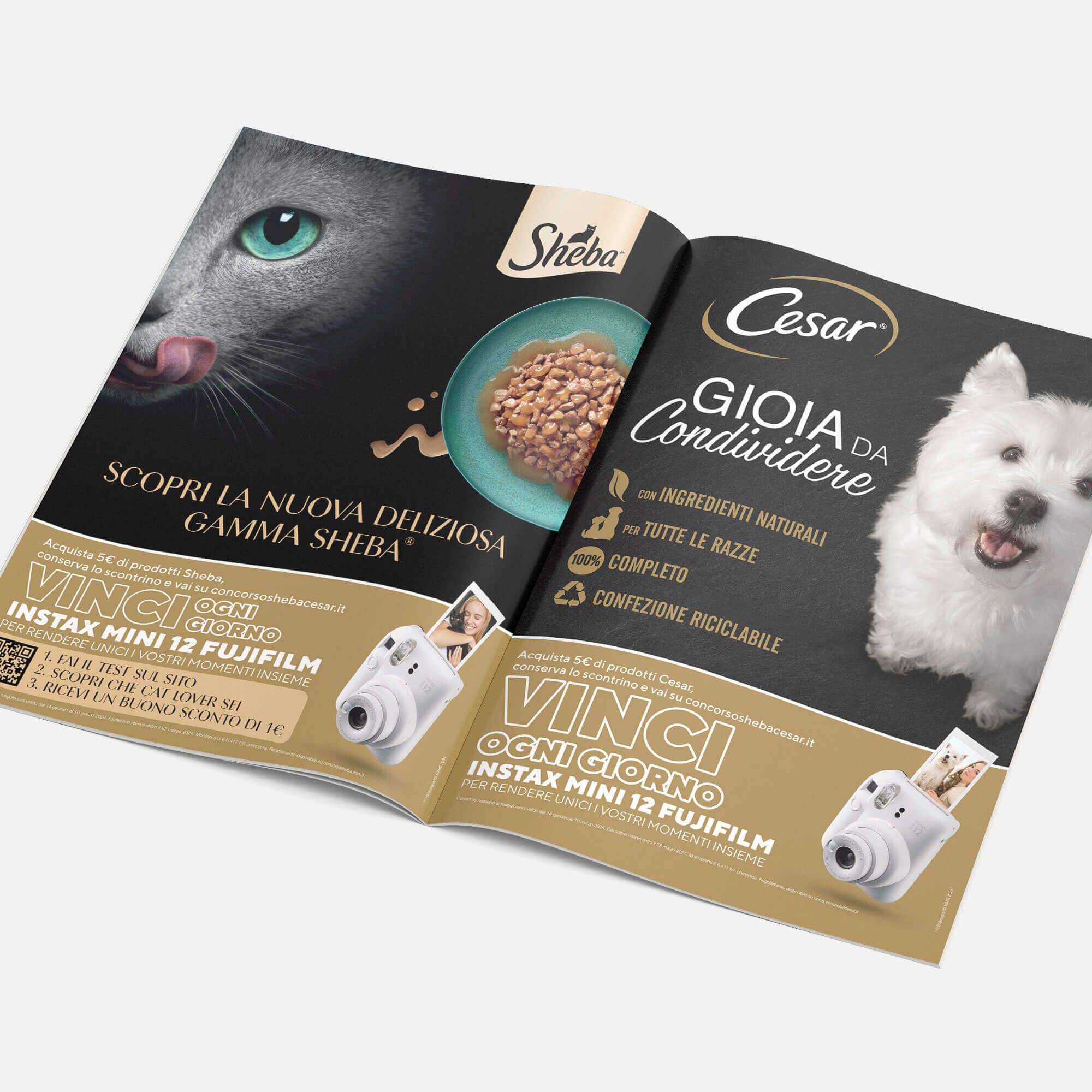 Cane e gatto, chi l’ha detto che non si può promuoverli insieme? In questo progetto abbiamo integrato con successo i due brand petfood Sheba e Cesar sviluppando un format comunicativo bicolor per i materiali in store e coinvolgendo i due diversi target di pet lovers con un contest unico che ha premiato i consumatori ogni giorno con le fotocamere Fujfilm per tanti nuovi momenti insieme da ricordare. Inoltre, attraverso la piattaforma web di partecipazione, i cat lovers hanno avuto una possibilità di testare il proprio livello “di dipendenza” dal proprio gatto, per scoprire con poche domande il proprio profilo: devoto, indipendente o coccolone? Tutti i partecipanti ricevevano via e-mail un buono sconto per l’acquisto dei prodotti Sheba.
